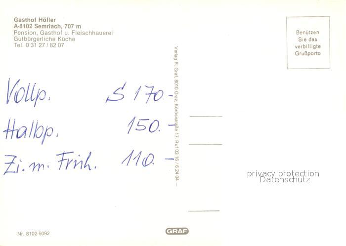73517183 Semriach Gasthof Hoefler Gaststube Strassenpartie Fliegeraufnahme postalisch nicht gelaufen Erhaltung siehe scans [FriedD77] KatCode: 11390221060645