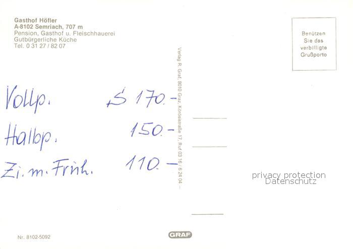 13189428 Semriach Gasthof Hoefler postalisch nicht gelaufen Erhaltung siehe scans [PaolaD17] KatCode: 11390221060645