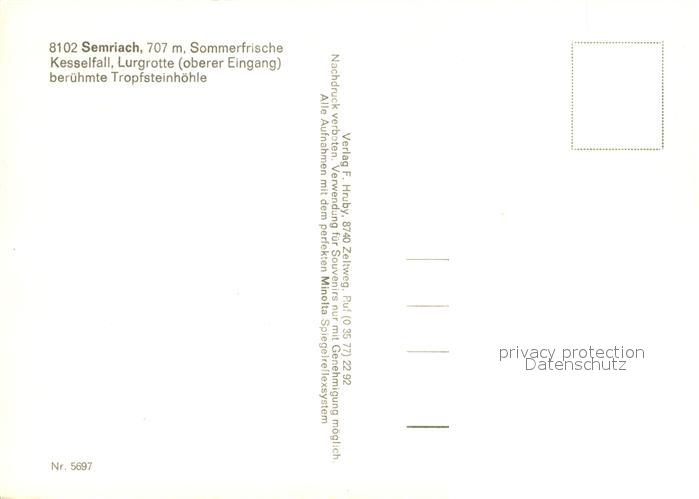 73248806 Semriach Kesselfall Lurgrotte Tropfsteinhoehle postalisch nicht gelaufen Erhaltung siehe scans [NatalD47] KatCode: 11390221060645