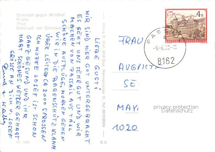 72438226 alte Postkarte Semriach Kirche Platz postalisch gelaufen Erhaltung siehe scans KatCode: 11390221060645