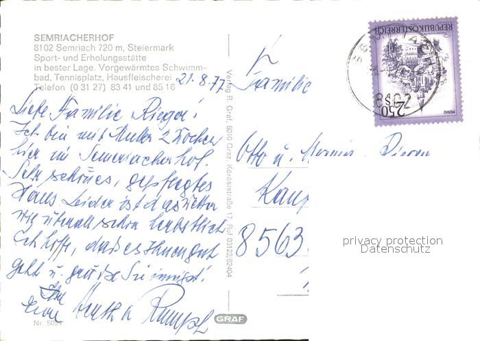 72309197 alte Postkarte Semriach Semriacher Hof postalisch gelaufen Erhaltung siehe scans KatCode: 11390221060645
