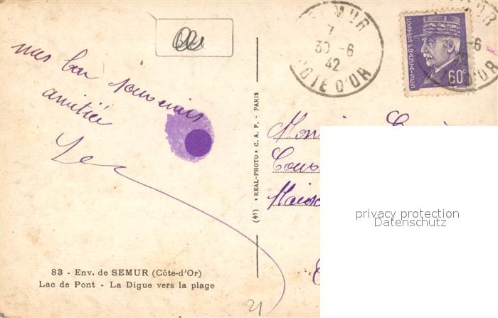 13501975 carte postale Semur-en-Auxois Lac de Pont La Digue vers la plage postalisch gelaufen Erhaltung siehe scans [KathaD81] KatCode: 11170021321603