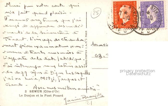 13501972 carte postale Semur-en-Auxois Le Donjon le Pont Pinard postalisch gelaufen Erhaltung siehe scans [KathaD81] KatCode: 11170021321603