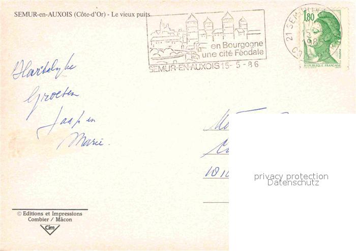 12687962 carte postale Semur-en-Auxois Le vieux puits Brunnen postalisch gelaufen Erhaltung siehe scans [FriedD77] KatCode: 11170021321603