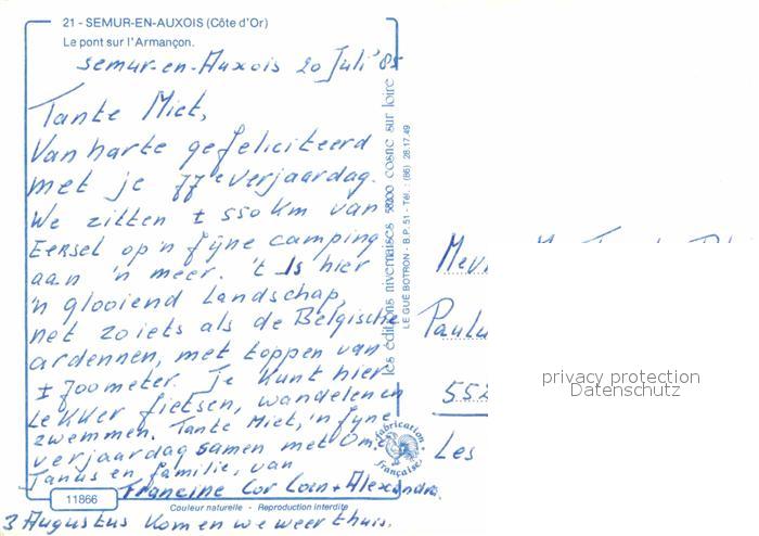 12840565 Semur-en-Auxois Pont sur l’Armancon Bruecke Altstadt Kirche postalisch nicht gelaufen Erhaltung siehe scans [FriedD77] KatCode: 11170021321603