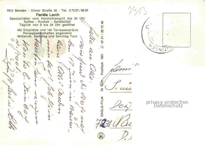 74050091 alte Postkarte Senden Iller Rotisserie Rustikal Gastraeume Moebel Inhofer postalisch gelaufen Erhaltung siehe scans [WerneD78] KatCode: 11110009775152