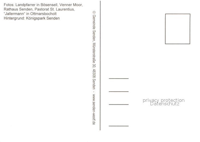 73213434 Senden Westfalen Landpfarrer in Boesensell Venner Moor Rathaus Pastorat St Laurentius Jallermann Koenigspark postalisch nicht gelaufen Erhaltung siehe scans [WerneD78] KatCode: 11110005558044