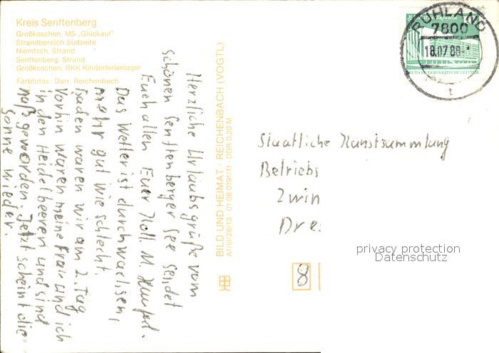 72406785 alte Postkarte Senftenberg Niederlausitz Erholungszentrum Senftenberger See MS Glueckauf Bootsanleger Strand Kinderferienlager postalisch gelaufen Erhaltung siehe scans KatCode: 11110012066304