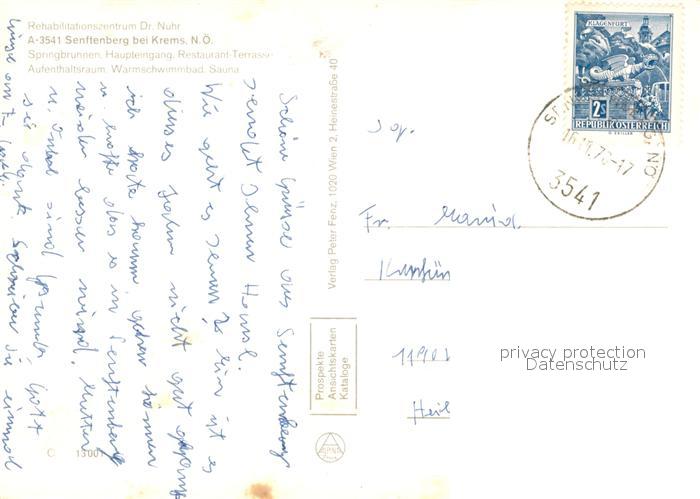 73043531 alte Postkarte Senftenberg Niederoesterreich Rehabilitationszentrum Dr Nuhr Springbrunnen Hallenbad Sauna postalisch gelaufen Erhaltung siehe scans [FriedD77] KatCode: 11390124031343