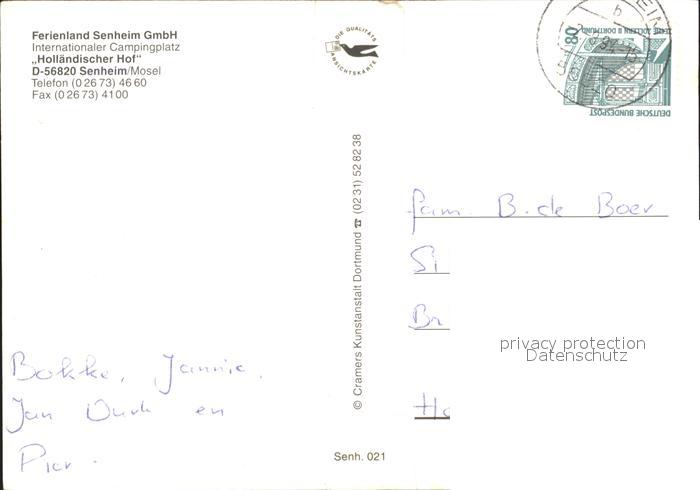 72159144 alte Postkarte Senheim-Senhals Camping Hollaendischer Hof Restaurant Moseltal postalisch gelaufen Erhaltung siehe scans KatCode: 11110007135079