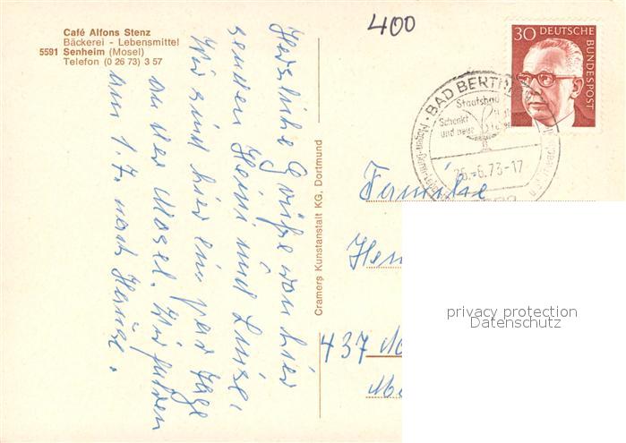 73672681 alte Postkarte Senheim-Senhals Moselpartien Kirche Inneres Ortsmotive postalisch gelaufen Erhaltung siehe scans [WerneD78] KatCode: 11110007135079