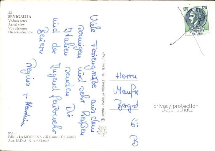 Senigallia Fliegeraufnahme postalisch nicht gelaufen Erhaltung siehe scans