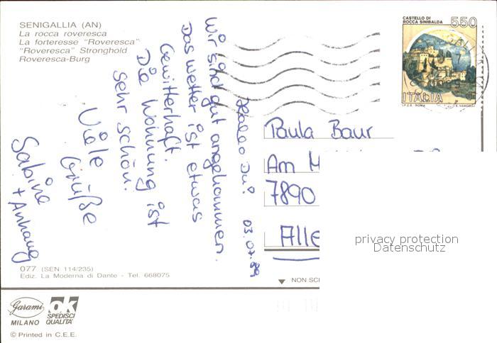 old postcard Senigallia Rocca roveresca Forteresse Burg postalisch gelaufen Erhaltung siehe scans