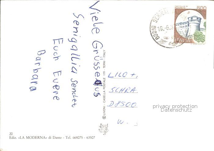 old postcard Senigallia Rocca Roveresca Strand Kirche postalisch gelaufen Erhaltung siehe scans
