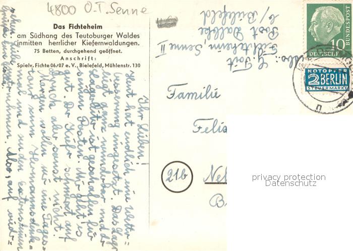 73695818 alte Postkarte Senne Bielefeld Das Fichteheim am Teutoburger Wald postalisch gelaufen Erhaltung siehe scans [LiesaD40] KatCode: 11110005711000
