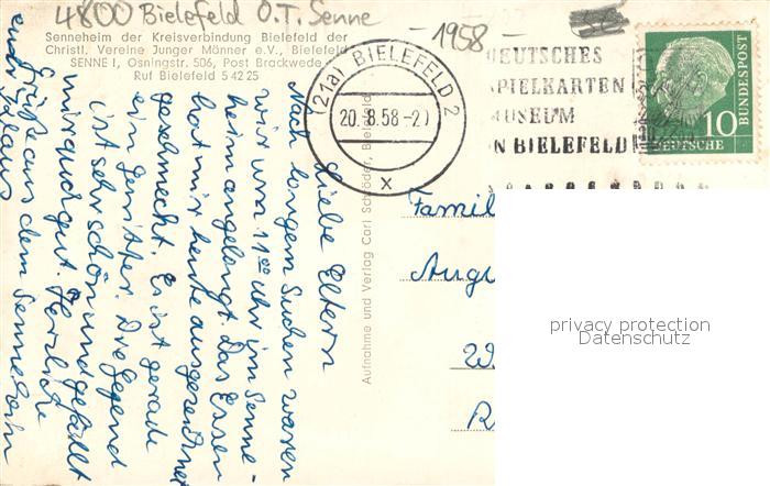 73704734 alte Postkarte Senne Bielefeld Senneheim der Kreisverbindung Bielefeld postalisch gelaufen Erhaltung siehe scans [LiesaD40] KatCode: 11110005711000