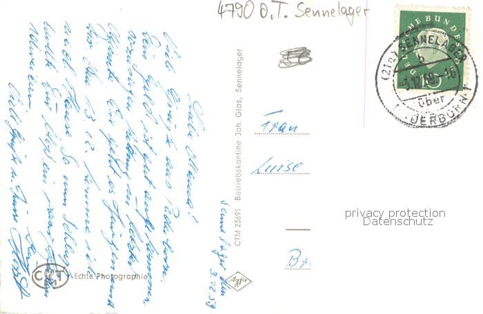 73694920 alte Postkarte Sennelager Paderborn Hermannsdenkmal Panorama Externsteine Strassenpartie postalisch gelaufen Erhaltung siehe scans [WerneD78] KatCode: 11110005774032