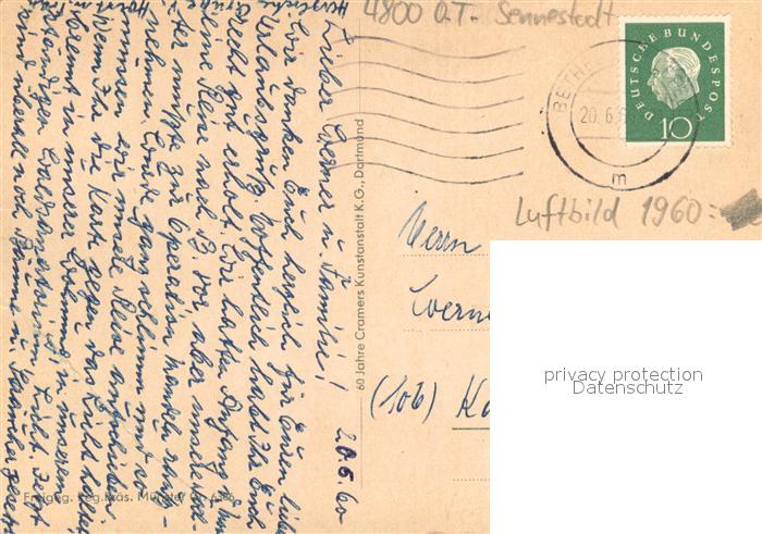 73750279 alte Postkarte Sennestadt Fliegeraufnahme postalisch gelaufen Erhaltung siehe scans [WerneD78] KatCode: 11110005711000