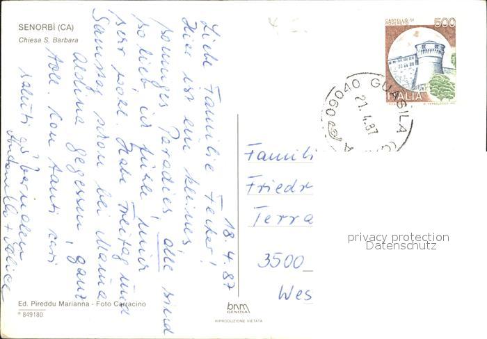 old postcard Senorbi Chiesa San Barbara postalisch gelaufen Erhaltung siehe scans