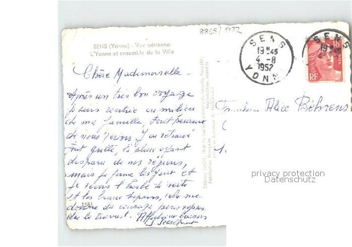 12194881 carte postale Sens 89 Fliegeraufnahme postalisch gelaufen Erhaltung siehe scans KatCode: 11170089389387