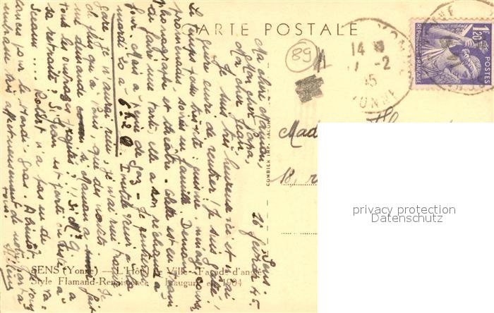 13508683 carte postale Sens 89 Hotel de Ville postalisch gelaufen Erhaltung siehe scans [KathaD81] KatCode: 11170089389387