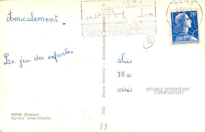 13487472 carte postale Sens 89 Square Jean Cousin Monument Statue postalisch gelaufen Erhaltung siehe scans [FriedD77] KatCode: 11170089389387