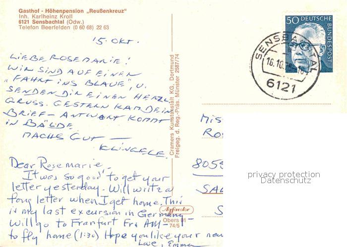 72654550 alte Postkarte Sensbachtal Gasthof Hoehenpension Reussenkreuz Odenwald Fliegeraufnahme postalisch gelaufen Erhaltung siehe scans [FriedD77] KatCode: 11110006437015