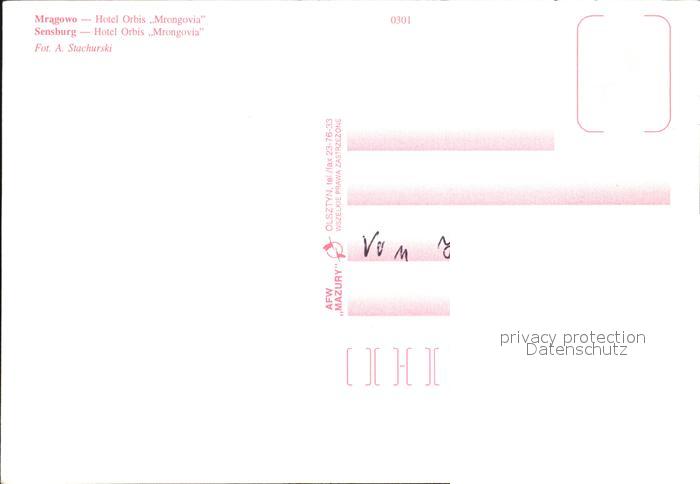 Sensburg Mragowo Hotel Mrongovia postalisch nicht gelaufen Erhaltung siehe scans [AndreD76]