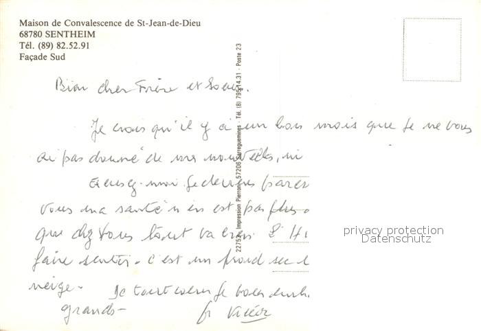 Sentheim Maison de Convalescence de Saint Jean de Dieu postalisch nicht gelaufen Erhaltung siehe scans [FriedD77]