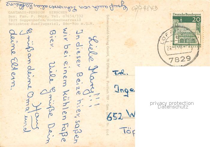 73645578 alte Postkarte Seppenhofen Gasthaus Hirschen postalisch gelaufen Erhaltung siehe scans [WerneD78] KatCode: 11110008315070