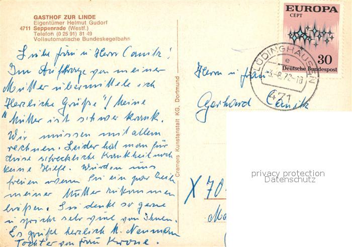 73072931 alte Postkarte Seppenrade Gasthaus Zur Linde postalisch gelaufen Erhaltung siehe scans [KathaD81] KatCode: 11110005558024