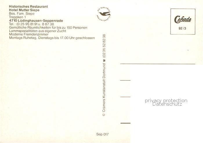 73871151 Seppenrade Historisches Restaurant Hotel MUtter Siepe Gastraeume postalisch nicht gelaufen Erhaltung siehe scans [WerneD78] KatCode: 11110005558024