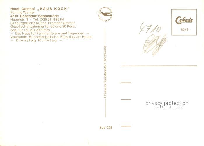 73659651 Seppenrade Hotel Gasthof Haus Kock Gaesteraum Kamin postalisch nicht gelaufen Erhaltung siehe scans [FriedD77] KatCode: 11110005558024
