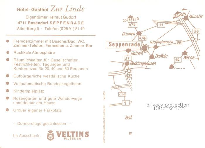 73646606 Seppenrade Hotel Gasthof Zur Linde Restaurant postalisch nicht gelaufen Werbekarte (keine Postkarte) Erhaltung siehe scans [FriedD77] KatCode: 11110005558024