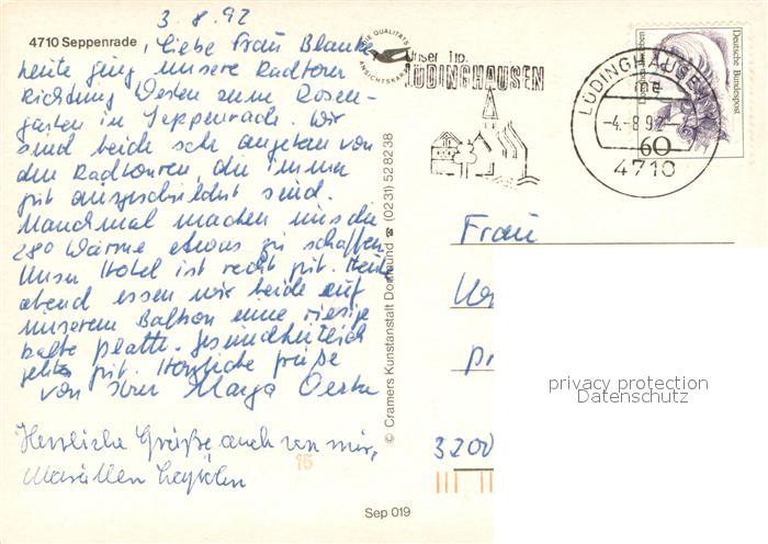 73670042 alte Postkarte Seppenrade Kirchplatz Rosengarten Park Bauerngarten Kirche Gaenseliesel postalisch gelaufen Erhaltung siehe scans [FriedD77] KatCode: 11110005558024