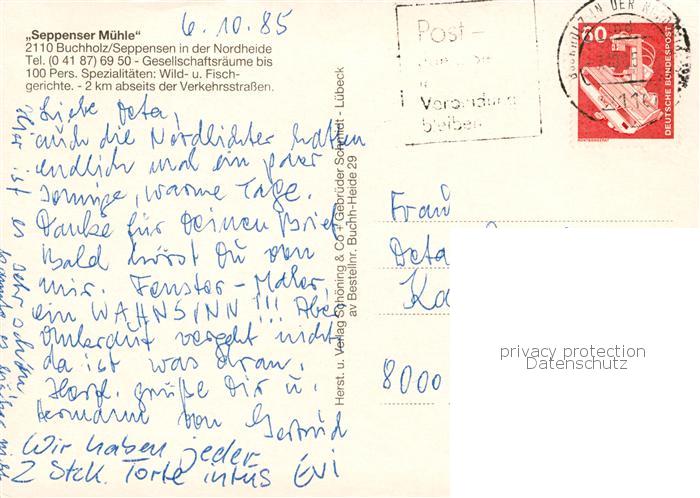 73865282 alte Postkarte Seppensen Seppenser Muehle Restaurant Uferpartie am See postalisch gelaufen Erhaltung siehe scans [FriedD77] KatCode: 11110003353005
