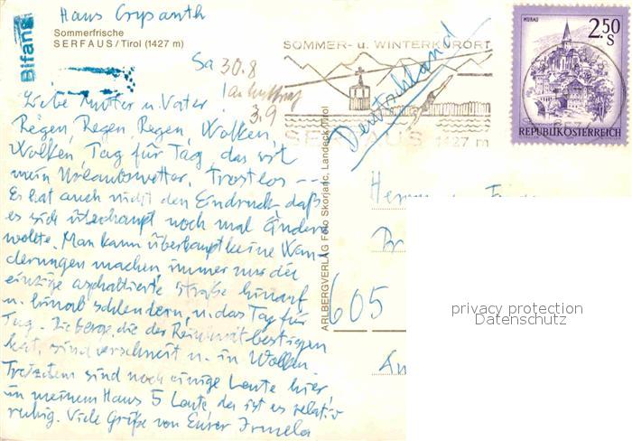 72841074 alte Postkarte Serfaus Tirol postalisch gelaufen Erhaltung siehe scans [NatalD47] KatCode: 11390334070624