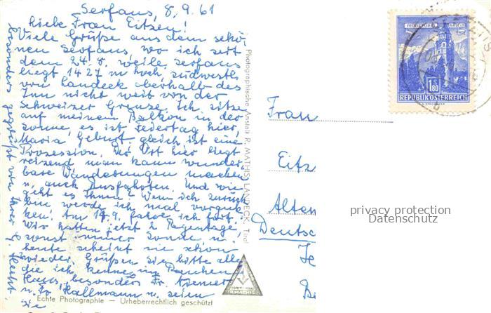 74150779 alte Postkarte Serfaus Tirol AT Karlspitz Talansicht Berglandschaft Dorf Fichten postalisch gelaufen Erhaltung siehe scans [Karloger] KatCode: 11390334070624