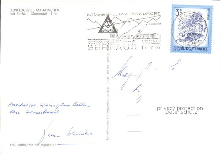 72235665 alte Postkarte Serfaus Tirol Ausflugsziel Madatschen postalisch gelaufen Erhaltung siehe scans KatCode: 11390334070624