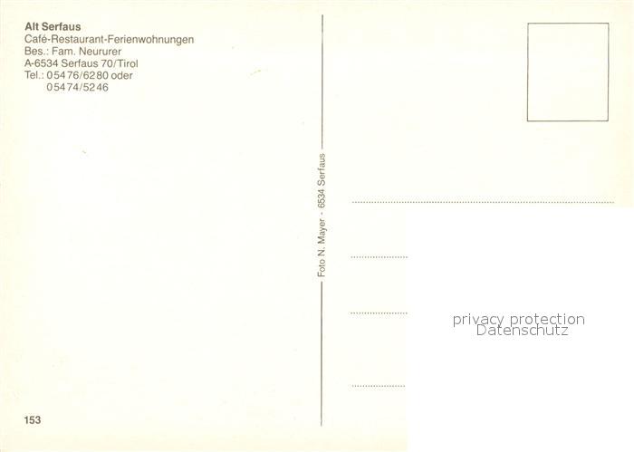 73591899 Serfaus Tirol Cafe Restaurant Ferienwohnungen postalisch nicht gelaufen Erhaltung siehe scans [FriedD77] KatCode: 11390334070624