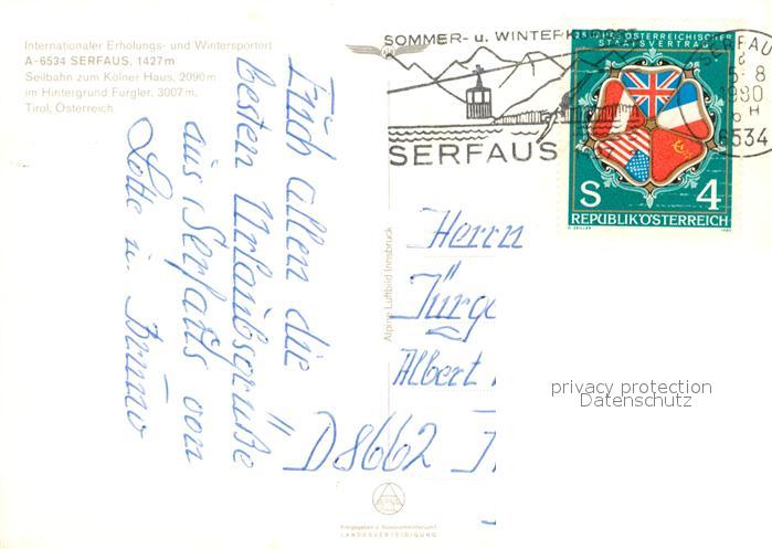 73171730 alte Postkarte Serfaus Tirol Fliegeraufnahme postalisch gelaufen Erhaltung siehe scans [NatalD47] KatCode: 11390334070624