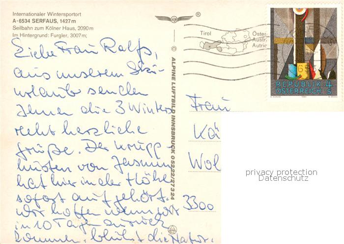73176138 alte Postkarte Serfaus Tirol Fliegeraufnahme Furgler postalisch gelaufen Erhaltung siehe scans [NatalD47] KatCode: 11390334070624