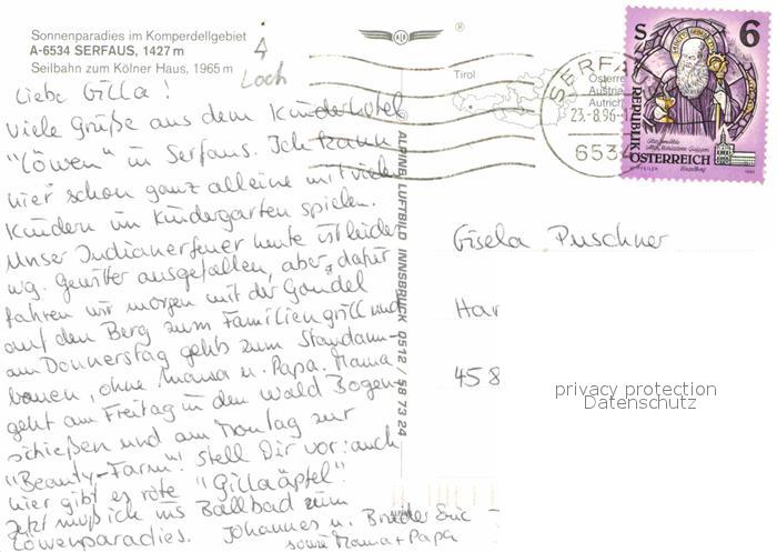 72716490 alte Postkarte Serfaus Tirol Fliegeraufnahme Seilbahn zum Koelner Haus postalisch gelaufen Erhaltung siehe scans [LiesaD40] KatCode: 11390334070624