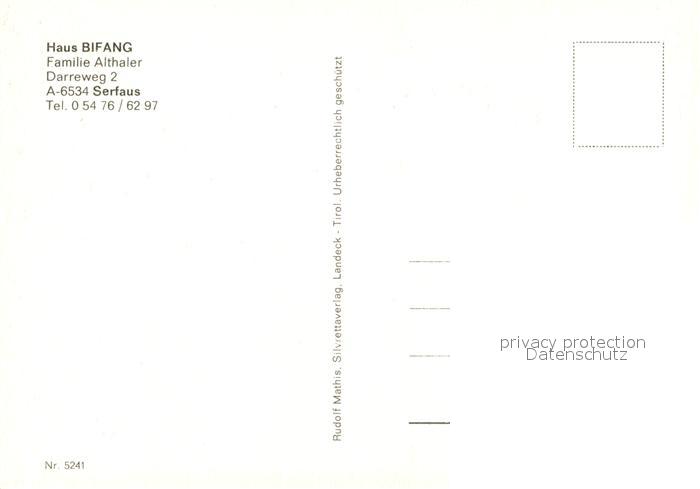 73591865 Serfaus Tirol Gaestehaus Pension Haus Bifang postalisch nicht gelaufen Erhaltung siehe scans [FriedD77] KatCode: 11390334070624