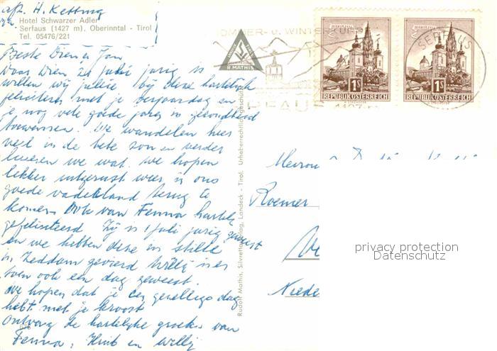 12873095 alte Postkarte Serfaus Tirol Hotel Schwarzer Adler postalisch gelaufen Erhaltung siehe scans [PaolaD17] KatCode: 11390334070624