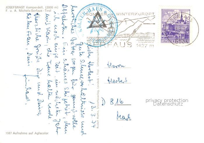 72951870 alte Postkarte Serfaus Tirol Josefsrast Komperdell postalisch gelaufen Erhaltung siehe scans [PaolaD17] KatCode: 11390334070624