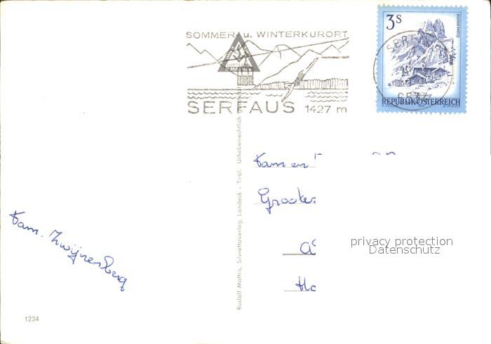 72093929 alte Postkarte Serfaus Tirol Kirche Dorffest Schwimmbad Panorama postalisch gelaufen Erhaltung siehe scans KatCode: 11390334070624