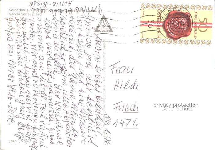 72306684 alte Postkarte Serfaus Tirol Koelnerhaus postalisch gelaufen Erhaltung siehe scans KatCode: 11390334070624