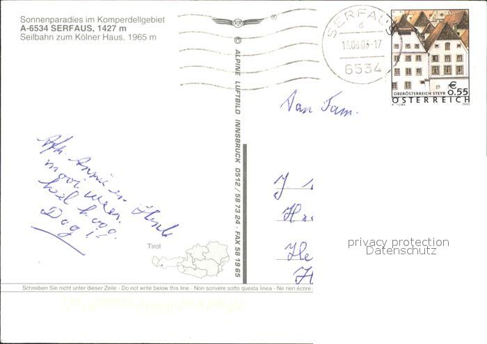 71872200 alte Postkarte Serfaus Tirol Koelnerhaus Furgler Fliegeraufnahme postalisch gelaufen Erhaltung siehe scans KatCode: 11390334070624
