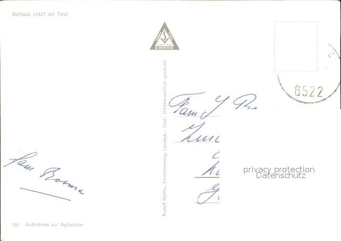 72092978 alte Postkarte Serfaus Tirol Ortsblick postalisch gelaufen Erhaltung siehe scans KatCode: 11390334070624